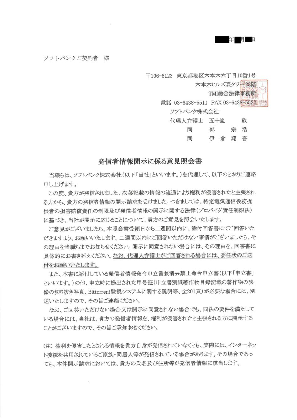 いずれにしても、ソフトバンクとプロバイダー契約をしている方は、意見照会なく突然、「開示命令が発令された旨の通知書」が届く可能性があるため、十分にご注意ください。