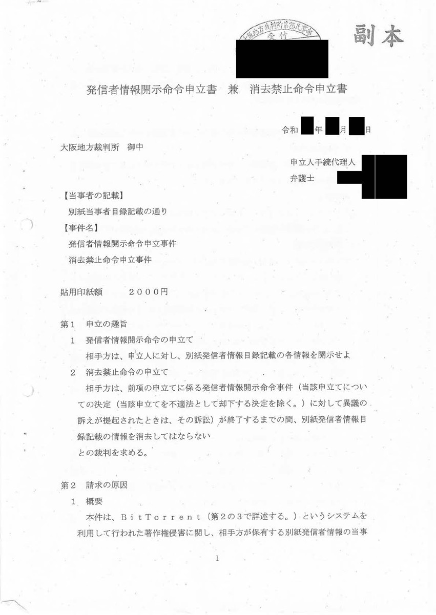 その内容を見ると、アダルトビデオをトレントで利用したとして開示請求がされていると書いてある。